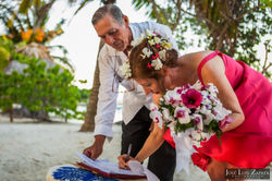 I was first introduced to Cheryl through her travel agent. Cheryl wanted to tie the knot in Belize with a close group of family and friends. She was a very nontradional bride, and her biggest request was to say her vows in the sand at sunset. We stayed in close contact, and I was lucky to get a sneak peak of her beautiful bright pink dress before she arrived.